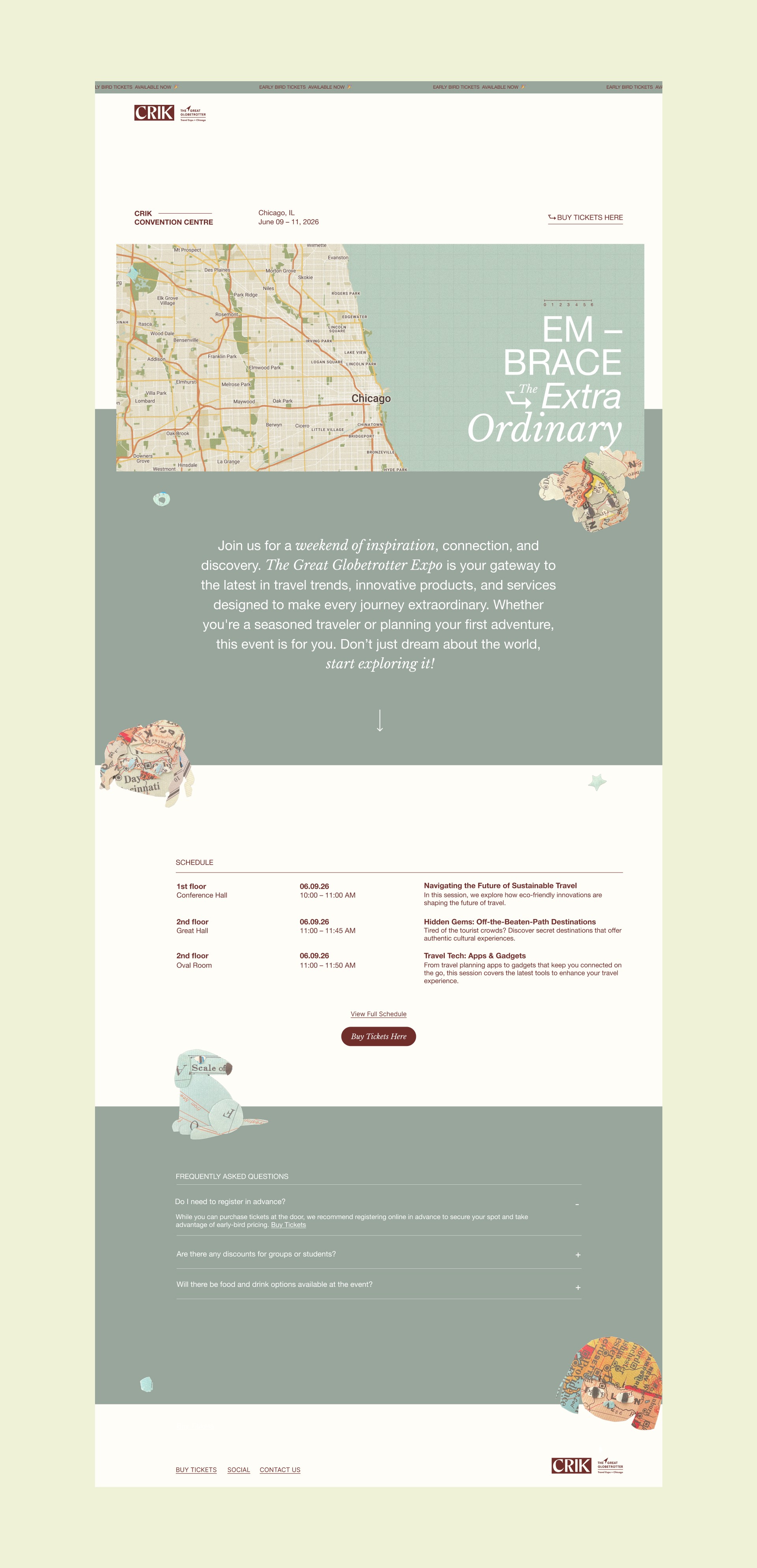 The Great Globetrotter Travel Expo in Chicago brings together key voices from the travel industry, designed for those seeking new cultural experiences, personal growth, and opportunities for exploration. The visual identity uses map-inspired cutouts as a metaphor for personal journeys, avoiding overused icons and creating a meaningful connection to the theme of exploration. This flexible, scalable design works seamlessly across both digital and print applications, reinforcing the event’s focus on immersive, authentic travel experiences.